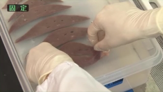 ホルマリンなどで組織検体の変性・腐敗を防ぎ形態や細胞物質を保持します。